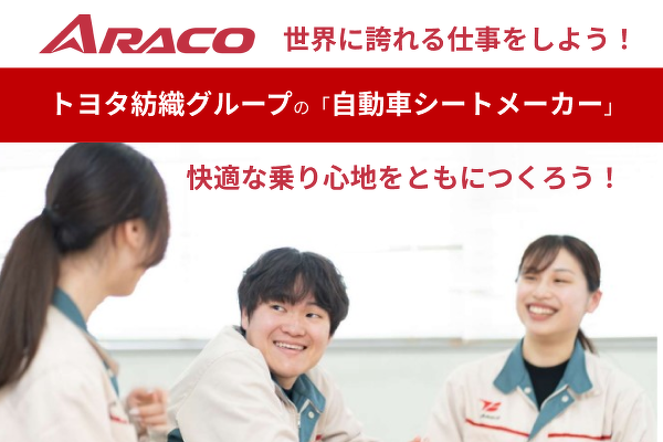 ■社会保険完備(雇用・労災・健康・厚生年金) ■時間外手当(全額支給) ■出張手当 ■役職手当 ■※技能評価手当(技能職のみ) ■※交代勤務手当(2直勤務者のみ) ■家族・扶養手当(子ども1人につき:月1万9500円、2~3人目:月3500円、4人目以降:月2000円) ■出産・育児支援制度 ■食事手当 年間6万6千円支給!!(月2,000円に加え、最大月3,500円まで社員食堂での食事代補助)※計算期間中の実出勤が5日未満の場合なし →各工場食堂完備しております ■退職金制度 ※勤続3年経過後支給 ■敷地内全面禁煙 ■マイカー通勤OK(駐車場完備/無料) ■制服有(2着目は会社が支給、2着目以降は会社が費用負担8割してくれるので自己負担2割で購入可能です) ■永年勤続表彰 ■慶弔見舞金 ■健康維持促進制度(インフルエンザ予防接種補助有、常備薬の購入補助など) ■アラコ労働組合 ■トヨタグループ団体保険制度(医療保険最大65%割引、自動車保険最大31%割引で加入できます) ■トヨタ紡織健康保険組合保養施設 ■トヨタグループ共同利用保養所 ■会員制ホテル宿泊割引(エクシブ) ■イベント多数(駅伝大会、レガッタ、ソフトボール大会など) ※ぜひスポーツ経験者、スポーツ好きは参加ください! ■教育制度(新入社員教育、階層別教育、専門教育、英語教育補助、ハラスメント防止教育制度など) ■フィットネスクラブ月会費補助(フィットイージー、チョコザップ等) ■提携保育園(豊田、豊橋工場近く2つの保育園と提携し出産・育児休暇後の復職をサポートします) ■フェムテック事業(「より働きやすい職場環境の構築」を目指し、Flora株式会社と連携して、アプリなどを活用しながら、女性の健康問題の解決を支援する取り組みを進めています) ■男性の育児休暇推奨(実際に若手社員が取得している実績あり) ■社会貢献活動 ・加子母未来の森づくり活動(岐阜県中津川市にてBBQや鮎つかみなど家族や同期と参加できるイベントあり、ごはん・交通費無料)等 ■斡旋(モータースポーツや美容機器などの割引展開あり) |