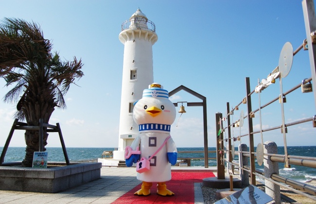 伊勢湾を望む白亜の野間灯台。美しい夕日がロマンチックで、恋人たちの憩いの場として人気。